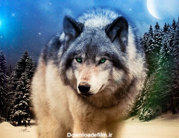 عکس گرگ در کولاک زمستانی ، عکس جالب گرافیکی کارتونی از گرگ گرسنه در کولاک و بارش برف سنگین شب زمستانی، جالب ترین تصاویر منتخب از گرگ های درنده و خطرناک در زیر بارش برف زمستانی و طوفان، منتخب عکس های انیمنشن از حیوانات در کولاک و طوفان