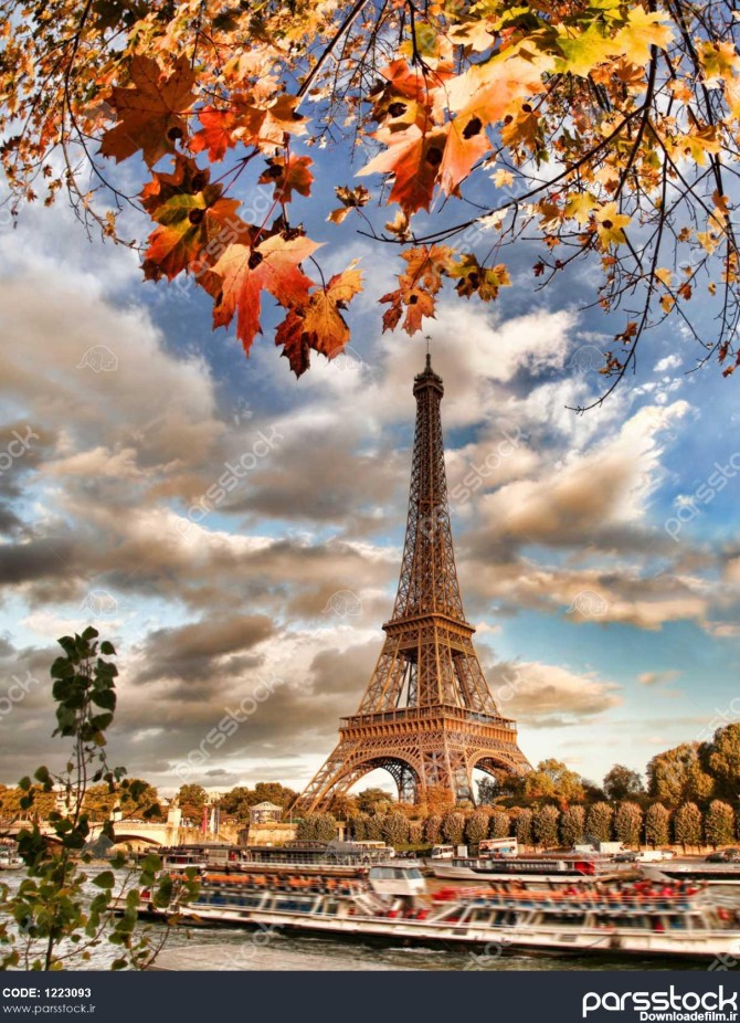 برج ایفل با برگ های پاییزی در پاریس فرانسه 1223093