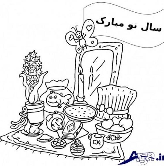 نقاشی و رنگی آمیزی عید نوروز و سفره هفت سین کودکان هفت سین بسیار ساده زیر مناسب بچه ها و دانش آموزان کوچکتر مثل کودکان پیش دبستانی است ، برخی اجزای این تصویر مثل...
