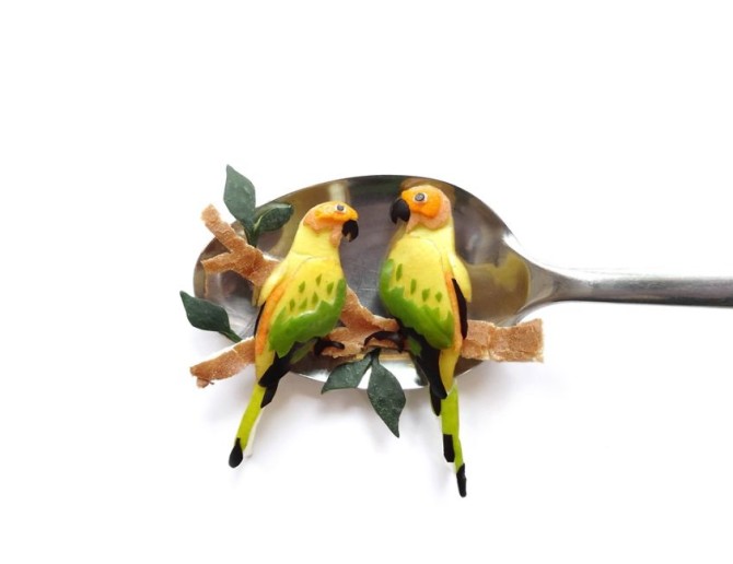 ایده ,خلاقیت ,تزیین مواد غذایی ,تزیین خوراکی ها ,نقاشی با مواد غذایی, نقاشی با خوراکی ها ,نقاشی روی قاشق با خوراکی, نقاشی روی قاشق با مواد غذایی