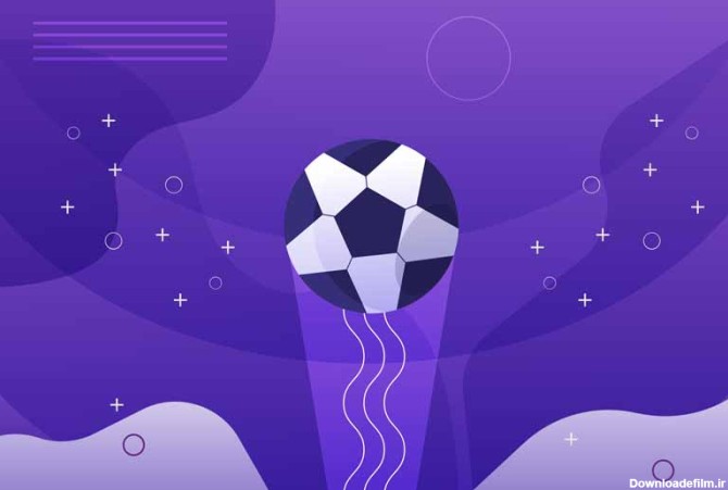 عکس با کیفیت زمین چمن فوتبال به همراه توپ در هنگام طلوع آفتاب