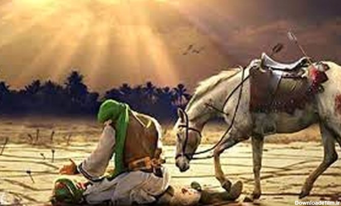نقاشی هنرمندانه از لحظه شهادت امام حسین علیه السلام در محاصره کوفیان و لشکر یزید - ظهر عاشورا را ببینید. منبع: نسیم آنلاین