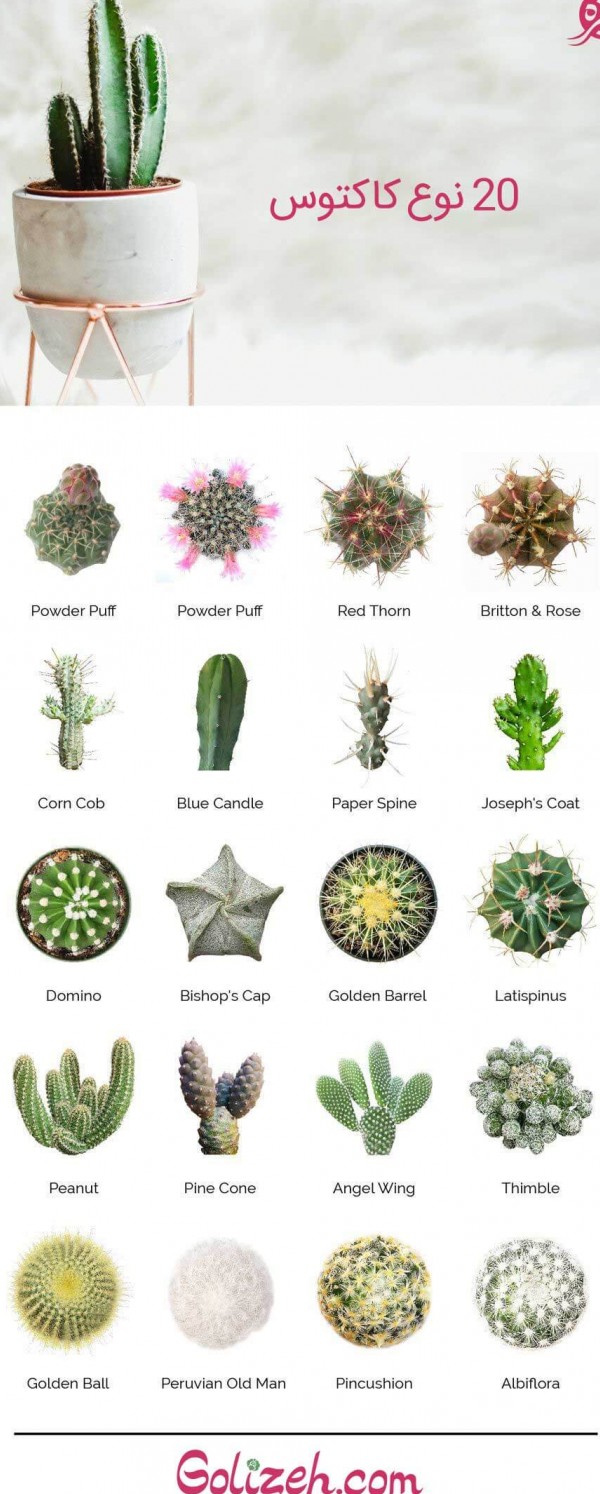 اسامی انواع کاکتوس با عکس، معرفی 130 نوع کاکتوس با مشخصات مانند گل، میوه و روش نگهداری ،به راحتی از روی عکس نام کاکتوس و روش نگهداری را پیدا کنید.