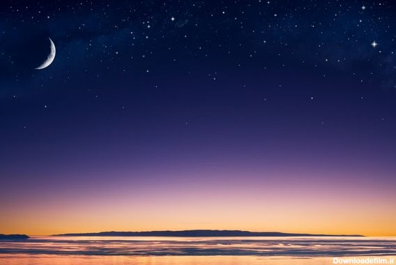 هلال ماه با پس زمینه زیبای غروب خورشید - بزرگترین مرجع خرید و فروش عکس و طرح لایه باز با کیفیت بالا در ایران در پارس استاک.