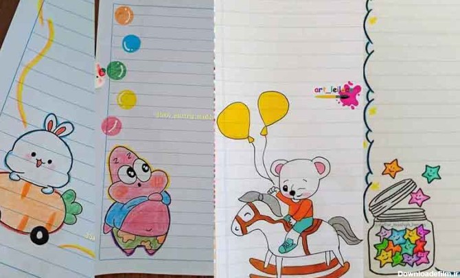 تزیین دفتر مشق ساده : شما با انجام دادن نقاشیهای ساده که کار هر کسی هست و از هر کسی برمیآید و نیاز به آموزش خاصی ندارد میتوانید