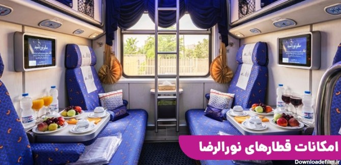 تمامی امکانات قطار نورالرضا که از معتبرترین شرکتهای ریلی است را بخوانید +ویژگی های قطار نورالرضا در بخش پذیرایی و خدمات در 4کلاس متفاوت