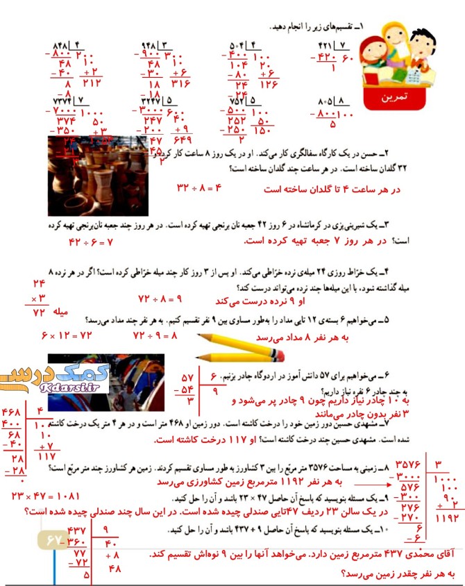 ریاضی چهارم صفحه ۶۷ با جواب کامل ، صفحه ی ۶۷ ریاضی چهارم ، پاسخ صفحه ی ۶۷ ریاضی چهارم ، حل ریاضی کلاس چهارم صفحه ۶۷ ، عکس صفحه ی ۶۷ ریاضی چهارم ، آموزش
