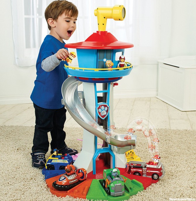 اسباب بازی سگهای نگهبان و برج مراقبت در حالت نصب شده 65 سانتی متر ارتفاع داره. یک فیگور مارشال با ماشین هم داره که میتونین اون رو روی آسانسور برج مراقبت قرار بدین تا بیاد پایین یا روی سرسره بذارینش تا با سرعت به سمت پایین سر بخوره!