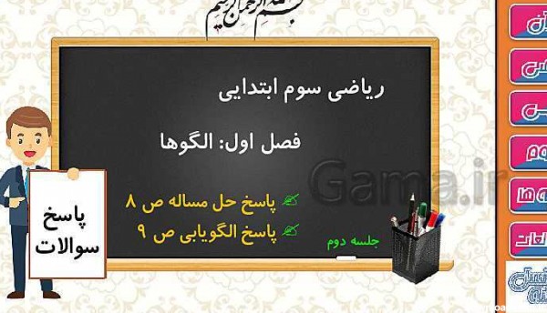 جواب حل مسئله صفحه ۸ و ۹ ریاضی سوم قسمت الگویابی ☑️ پاسخ گام به گام سوالات صفحه 8 و 9 ریاضی پایه سوم ابتدایی فصل ۱ الگوها با راه حل کامل و عکس