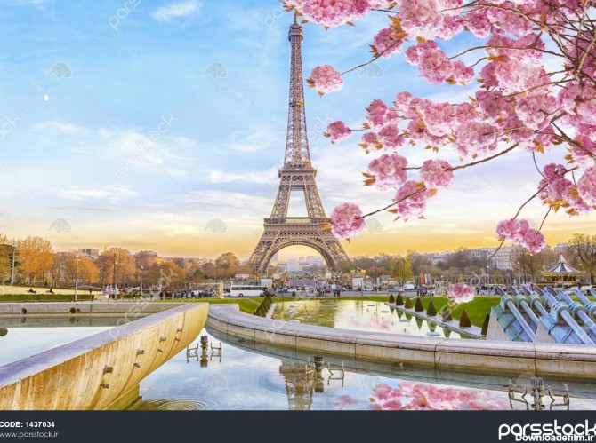 برج ایفل در صبح بهار در پاریس فرانسه پس زمینه سفر رمانتیک - بزرگترین مرجع خرید و فروش عکس و طرح لایه باز با کیفیت بالا در ایران در پارس استاک.