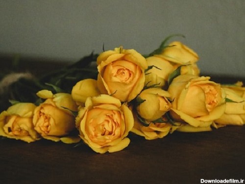 عکس با کیفیت دسته گل بسیار زیبا از گل های رز زرد