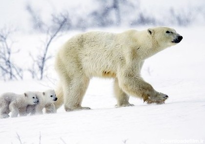 وینک بورتون، عکاس اهل نورفک از یک خرس قطبی و دو تولهاش در کانادا عکاسی کرده است. این تصاویر نشان میدهد این دو توله خرس که برای نخستین بار از لانه خارج شدهاند همچنان برای تامین غذا و گرما به مادر خود نیازمند هستند و به جای جستجو در محیط جدید اطراف خود بسیار نزدیک به مادرشان حرکت میکنند.