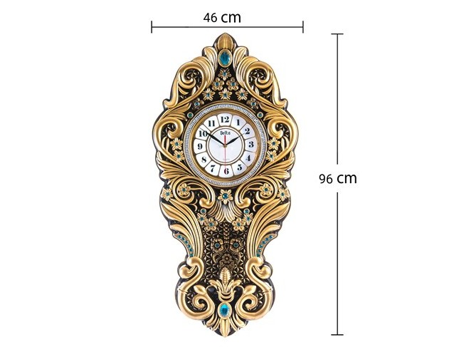 ساعت دیواری دلتا هامون دارای ابعاد 96*46 سانتی متر،طرح چوب، جنس پلاستیک فشرده، پاندول دار، موتور وانگرد بی صدا و دارای عقربه های فلزی است.