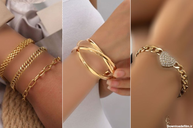 50 مدل دستبند طلا جدید 1403 برای تمام سبک های سلیقه ساده و پرکار در رنگ های متنوع برای خانم های اهل
