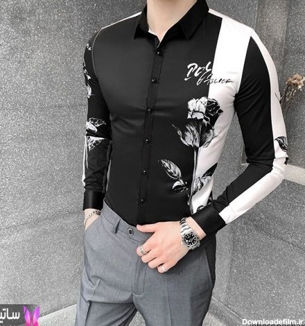 خرید لباس_ لباس مردانه_لباس مردانه جدید آقایان پیراهن طرحدار مشکی
