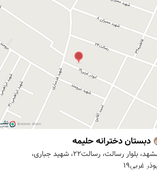 اطلاعات کامل مدرسه حلیمه مشهد به همراه آدرس، ساعت کاری، شماره تلفن را در نقشه و مسیریاب بلد بیابید.