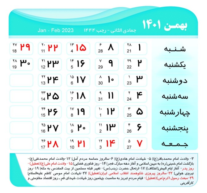 تقویم بهمن 1402+ تقویم بهمن 1402 در یک نگاه,تقویم بهمن 1402 دسکتاپ,تقویم بهمن ۱۴۰۲ با مناسبت ها,تعطی