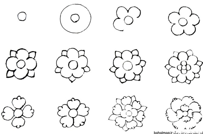 طراحی گل نقوش سنتی | آموزش مراحل طراحی گل ساده که بیشترین کاربرد را در طراحی سنتی دارد | گل ساده به همراه تزیینات بیشتر