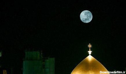 تصویر ویژه از ماه کامل شب نیمه ماه مبارک رمضان - نجف اشرف - حرم مطهر امام علی علیه السلام