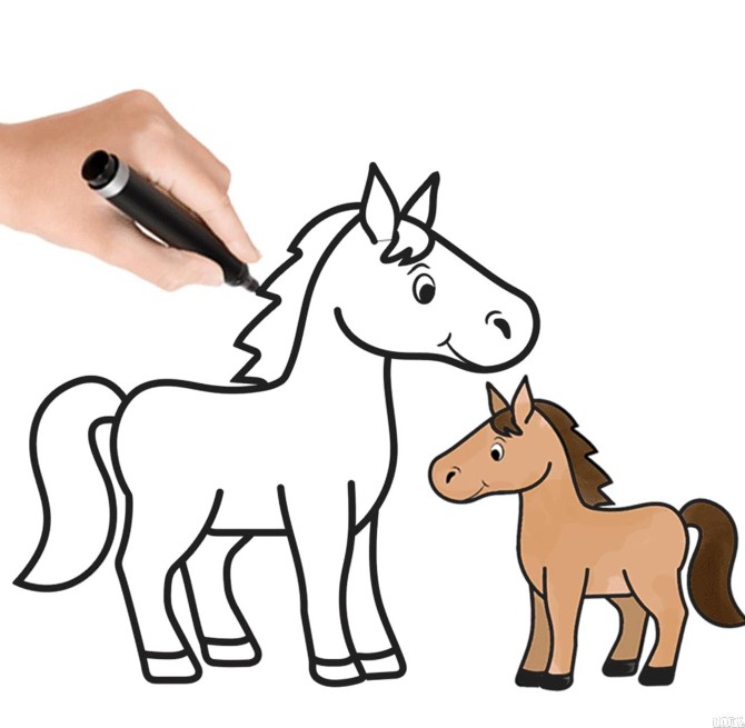 نقاشی ساده اسب عکس چطور یک اسب بکشیم؟ آموزش تصویری کشیدن اسب کودکانه، آموزش نقاشی اسب با استفاده از خطوط ساده، چگونه یک اسب کارتونی بکشیم؛ نحوه کشیدن اسب با استایل کارتونی؛ در آموزش...