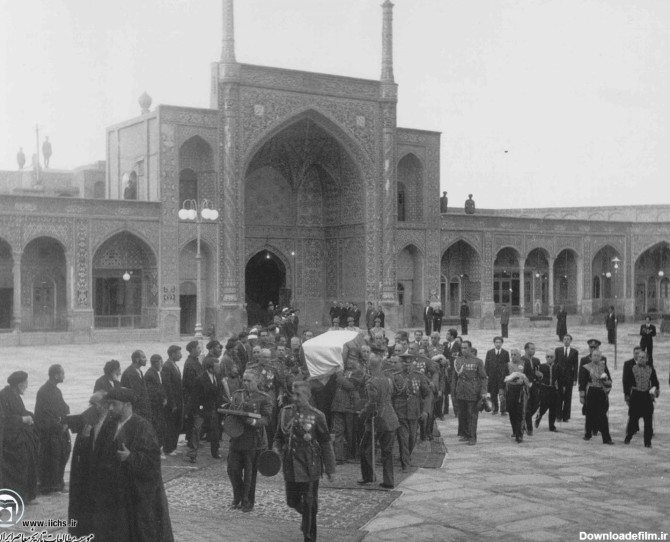 از آخرین تصاویر از رضا خان - پس از مرگ مراسم تشییع جنازه رضا پهلوی در صحن حرم حضرت معصومه در قم ، به هنگام انتقال به تهران با حضور جمعی از