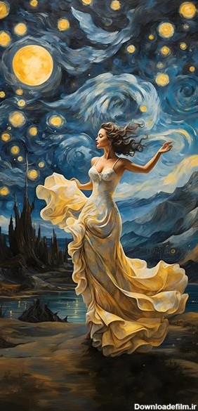 تصویر پس زمینه با الهام از نقاشی ونسان ون گوگ - شب مهتابی پس زمینه انتزاعی ماه درخشان و آسمان پرستاره پس زمینه - بزرگترین مرجع خرید و فروش عکس و طرح لایه باز با کیفیت بالا در ایران در پارس استاک.
