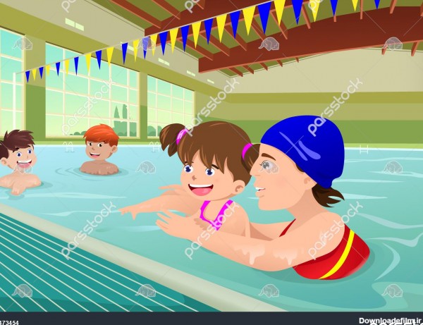 یک تصویر برداری از بچه هایی که یک درس شنا در استخر سرپوشیده دارند - بزرگترین مرجع خرید و فروش عکس و طرح لایه باز با کیفیت بالا در ایران در پارس استاک.