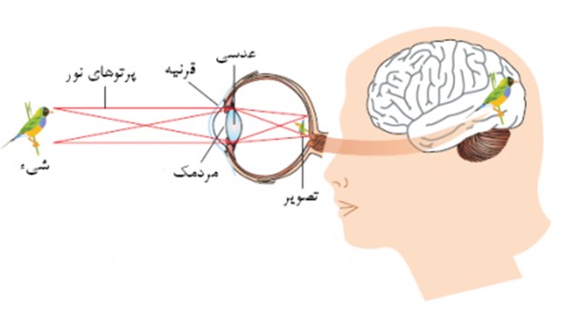 انکسار نور در چشم منظور از انکسار در واقع مسیری است که شعاعهای نورانی از روی اشیای موجود در میدان بینایی ما تا تشکیل تصویر واضحی در داخل چشمها طی میکنند. سیستم بینایی چشم ما بعد از دریافت نور و پردازش شعاعهای نورانی به صورت امواج الکتریکی و سپس ارسال آن به سمت مغز،