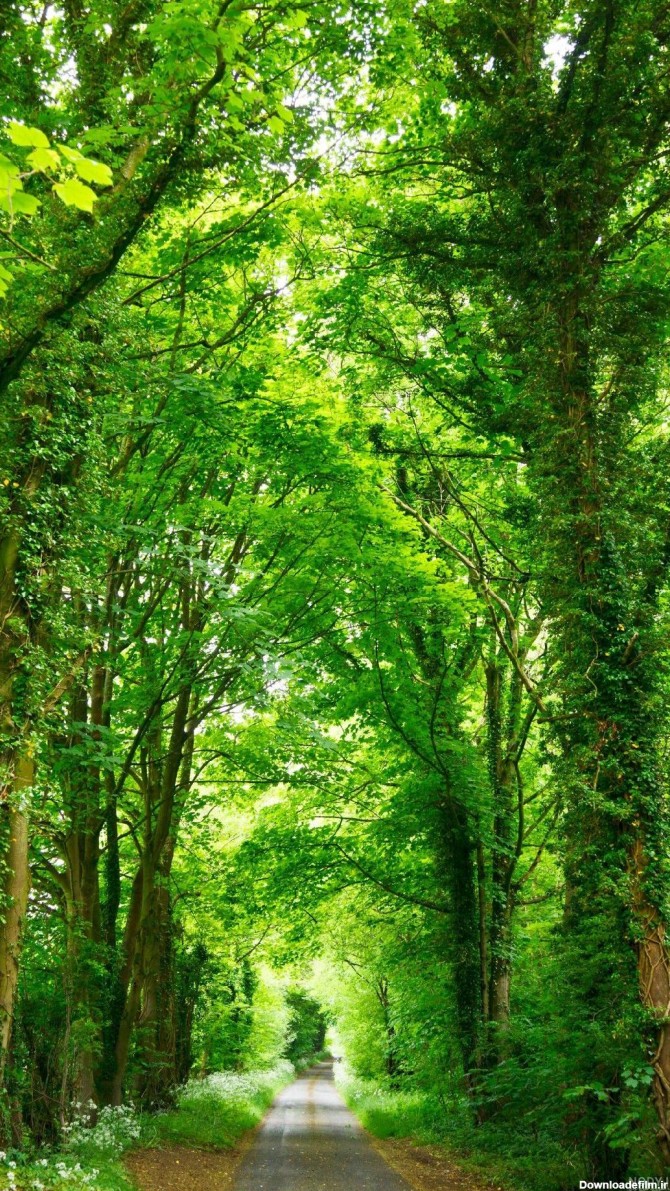 عکس زمینه جاده میان درختان زیبا جنگلی پس زمینه | والپیپر گرام