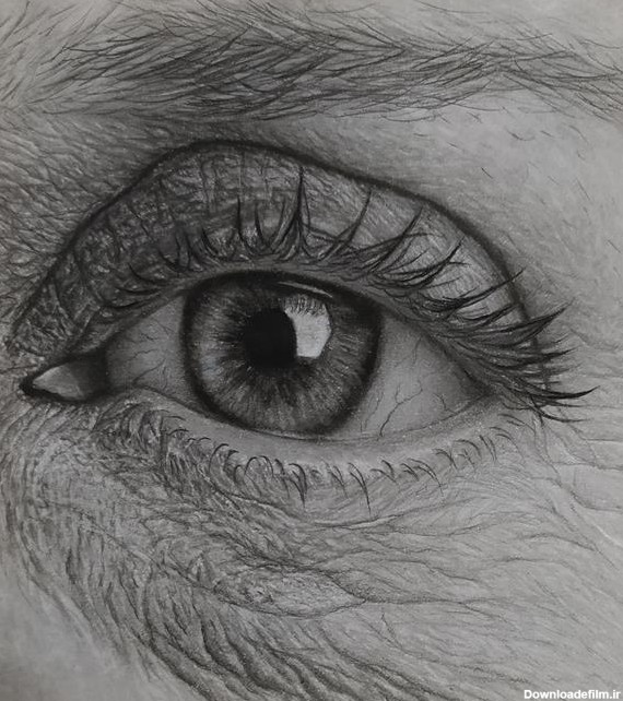 طراحی چشم پیر با تکنیک سیاه قلم سبک هایپر رئال