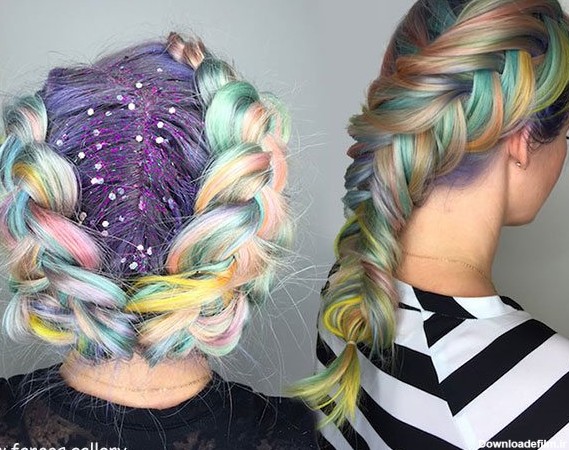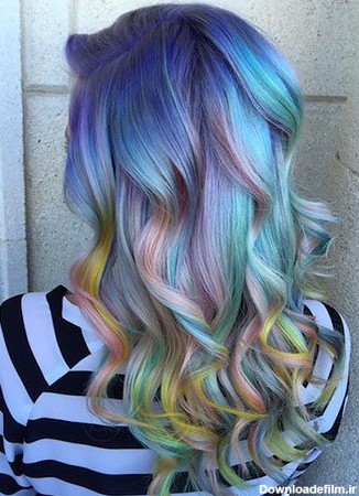 رنگ موی رنگین کمانی,مدل رنگ موی دخترانه,موهای رنگین کمانی, موی هفت رنگ, رنگ موی فانتزی, هایلایت هفت رنگ, هنر شن و ماسه, پاستل,موهای رنگی رنگی