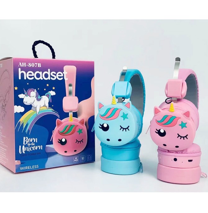 هدفون بلوتوثی دخترانه مدل AH-807B در دو رنگ آبی و صورتی دارای ورودی مموری کارت و اتصال از طریق کابل AUX بوده و با بلوتوث می توان به گوشی موبایل و تبلت متصل شد