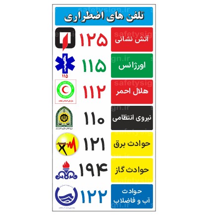 80600 - شماره تلفنهای اضطراری شرکت ایمن دقیق زنگان تولید کننده تابلوها و علائم ایمنی