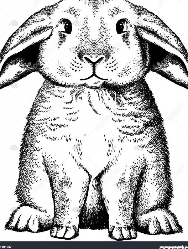 سیاه و سفید طرح خرگوش ناز نشسته در پاهای عقبی آن است. تصویر برداری. - بزرگترین مرجع خرید و فروش عکس و طرح لایه باز با کیفیت بالا در ایران در پارس استاک.