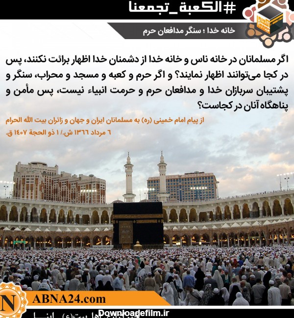 همزمان با ایام حج ابراهیمی، سلسله عکسها و مطالبی تحت عنوان «کعبه ما را گرد هم می آورد (#الکعبة_تجمعنا)» با محوریت سخنان «امام خمینی(ره)» و «امام خامنه ای»، به خوانندگان ابنا تقدیم می گردد. فعالان فضای مجازی می توانند با انتشار این عکس نوشته ها و هشتگ #الکعبة_تجمعنا در جهاد مجازی حج امسال مشارکت داشته باشند.