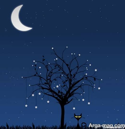 عکس ماه و ستاره در شب، دانلود عکس های فانتزی و کارتونی زیبا از ماه و ستاره در آسمان شب برای عکس پروفایل، عکس ماه و ستاره نقاشی