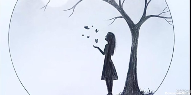 نقاشی سیاه قلم زیبا در یک دایره طاها
