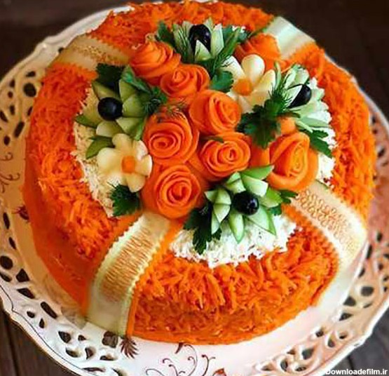 طرز تهیه کیک سالاد الویه با تزیینات جدید و جذاب