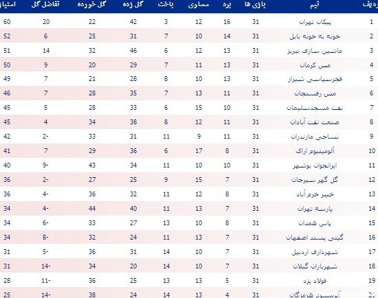جدول لیگ آزادگان و برنامه بازیهای لیگ آزادگان و نتایج مسابفات لیگ آزادگان و گلزنان برتر