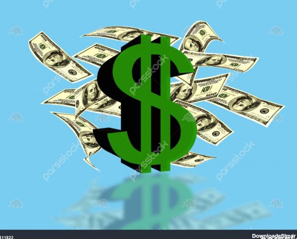 علامت دلار ایالات متحده با یادداشت های ارز در پس زمینه آبی - بزرگترین مرجع خرید و فروش عکس و طرح لایه باز با کیفیت بالا در ایران در پارس استاک.