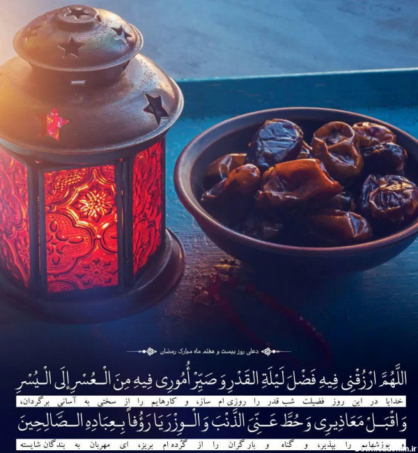 اللهمّ قَرّبْنی فیهِ الی مَرْضاتِکَ و جَنّبْنی فیهِ من سَخَطِکَ و نَقماتِکَ و وفّقْنی فیهِ لقراءةِ آیاتِکَ برحْمَتِکَ یا أرْحَمَ الرّاحِمین؛ خدایا، مرا در این ماه به خشنودیات نزدیک کن و از خشم و انتقامت برکنار دار و به قرائت آیاتت موفق کن، ای مهربانترین مهربانان.