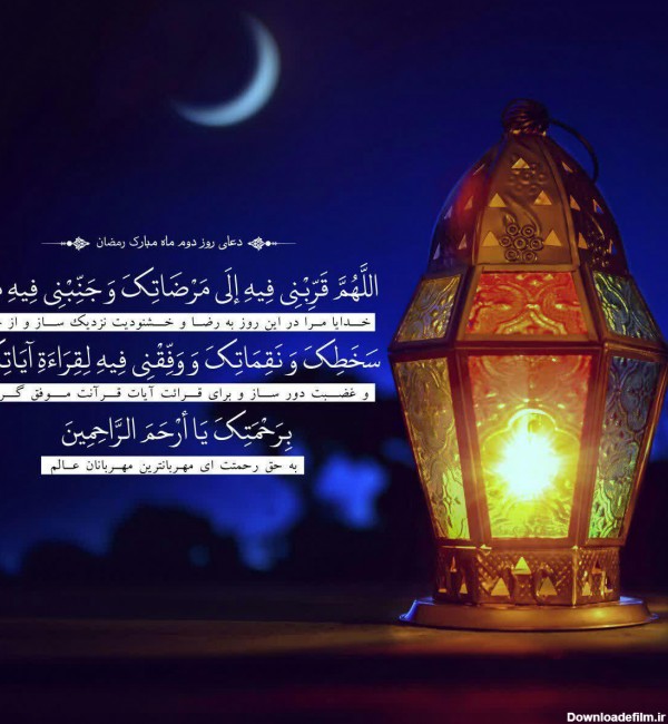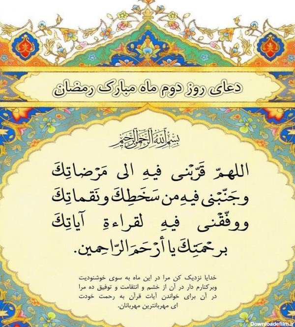 دعای مختصر روز دوم ماه مبارک رمضان - کلیات مفاتیح الجنان با ترجمه استاد حسین انصاریان - متن و ترجمه + عکس نوشته دعا