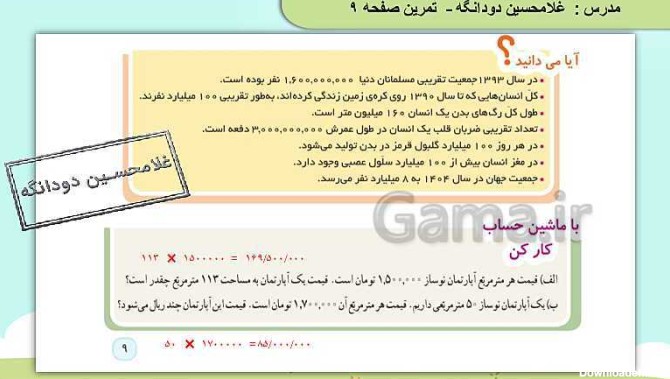 ( حل تشریحی کامل و رایگان تمرین های درس ریاضی پنجم) + حل تمرین صفحه 9 ریاضی پنجم