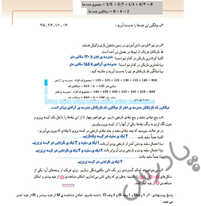 ریاضی پنجم صفحه ۷ و ۸ با جواب ، ریاضی پنجم صفحه 7 و 8 و 9 با جواب ، ریاضی پنجم صفحه ۸ و ۹ با جواب ، عکس صفحه ۸ ریاضی پنجم با جواب ، ریاضی پنجم صفحه ۸ و ۹