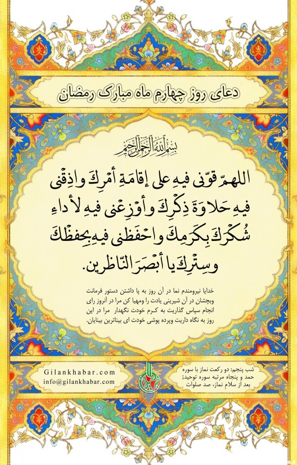 درخواست توانمندی برای ادای امر خداوند بخشی از مضمون دعای روز چهارم ماه مبارک رمضان است.