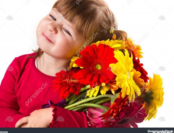 دختر بچه زیبا با گل های ژربرا دسته گل - بزرگترین مرجع خرید و فروش عکس و طرح لایه باز با کیفیت بالا در ایران در پارس استاک.