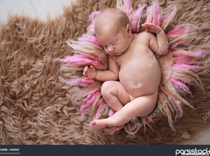 نوزاد تازه متولد شده در خواب شیرین روی پشم خز صورتی بژ - بزرگترین مرجع خرید و فروش عکس و طرح لایه باز با کیفیت بالا در ایران در پارس استاک.