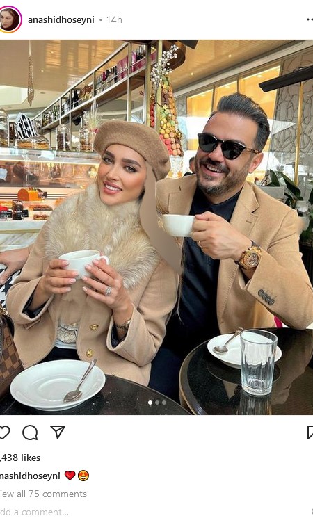 آناشید حسینی عکسی جدید از خود و همسرش را در مکانی لاکچری در فضای مجازی منتشر کرده است.
