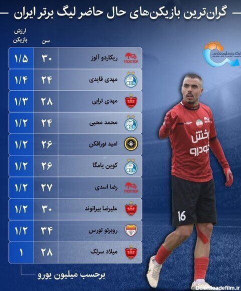 با ارزشترین بازیکنهای حال حاضر لیگ برتر ایران معرفی شدند.