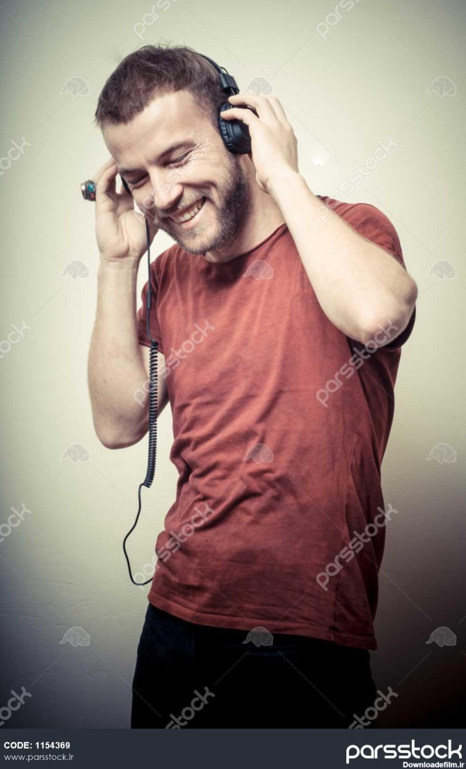 پرتره کلاسیک مرد خندان مد با هدفون در پس زمینه خاکستری - بزرگترین مرجع خرید و فروش عکس و طرح لایه باز با کیفیت بالا در ایران در پارس استاک.